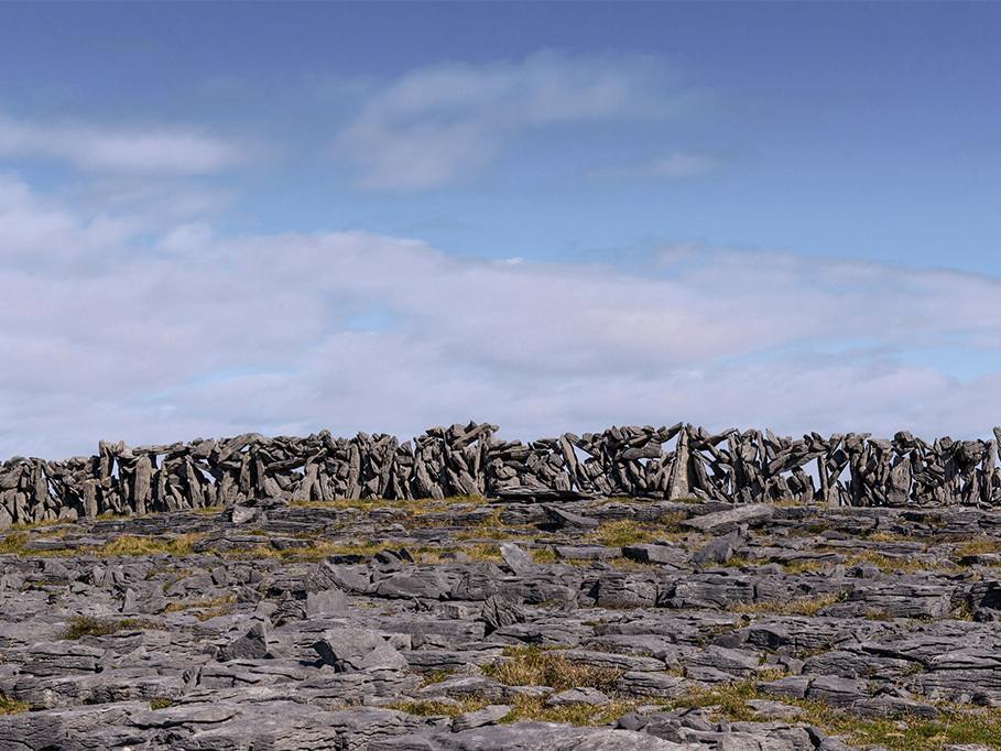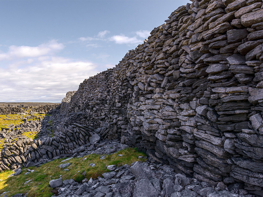 Across the Aran Islands, stone is both material and mindset. The same limestone that fractures the land was shaped into domestic dwellings and formidable cliffside forts such as Dún Dúchathair and more famously Dún Aonghus. Built without mortar, these structures were formed through necessity and knowledge, their strength drawn from placement, weight and balance.