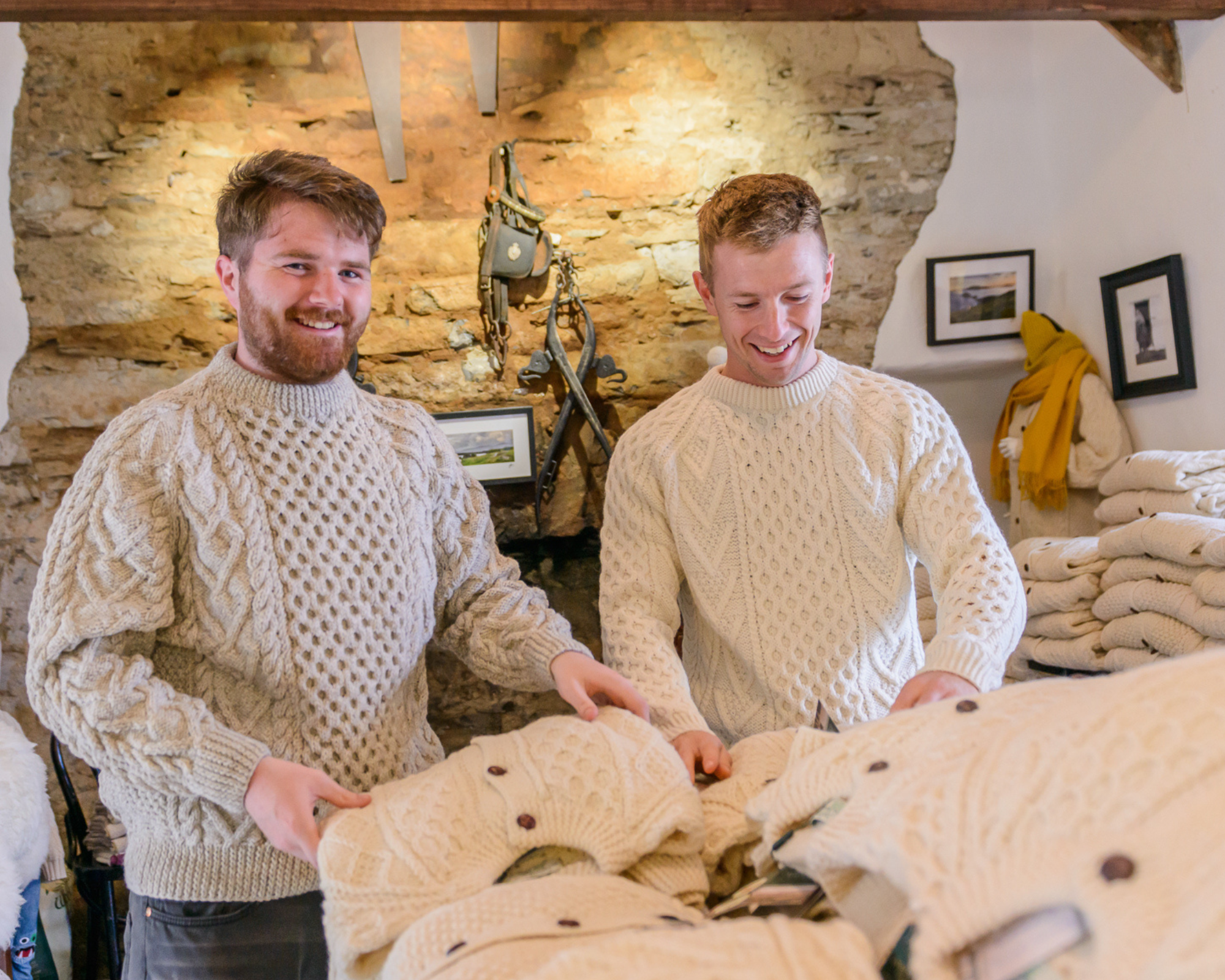 Our knowledgeable team, all of whom are island locals, are on hand to guide you through the heritage and craftsmanship, ensuring you find the perfect Aran piece to cherish for years to come.